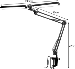 La lampe est équipée de deux sources de lumière que vous pouvez ajuster indépendamment pour éclairer deux postes de travail distincts simultanément. Le bras est entièrement réglable, garantissant une grande flexibilité d'utilisation.