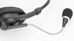 Casque stéréo avec microphone et commande de volume sur le câble. Grâce au microphone flexible avec gaine métallique, vous ajustez facilement sa position selon vos besoins.