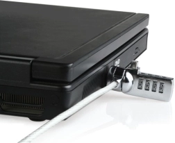 Antivol fiable pour ordinateur portable avec câble en acier et code à quatre chiffres pour la protection quotidienne de vos appareils. Offre jusqu’à 10 000 combinaisons, une installation facile dans le port de sécurité des ordinateurs portables et autres appareils, et un câble en acier robuste avec gaine plastique pour une longue durée de vie.