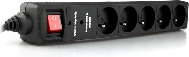 Cette pratique barrette électrique noire de 1,5 mètre offre cinq prises, idéale pour un usage domestique comme professionnel.