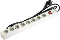 Multiprise PDU professionnelle pour rack 19" avec 8 prises de type E, câble de 1,8 m et fiche d’entrée Schuko. Conception en aluminium robuste, interrupteur principal rétroéclairé et possibilité de montage sous différents angles pour une alimentation sûre et pratique de votre équipement en rack.
