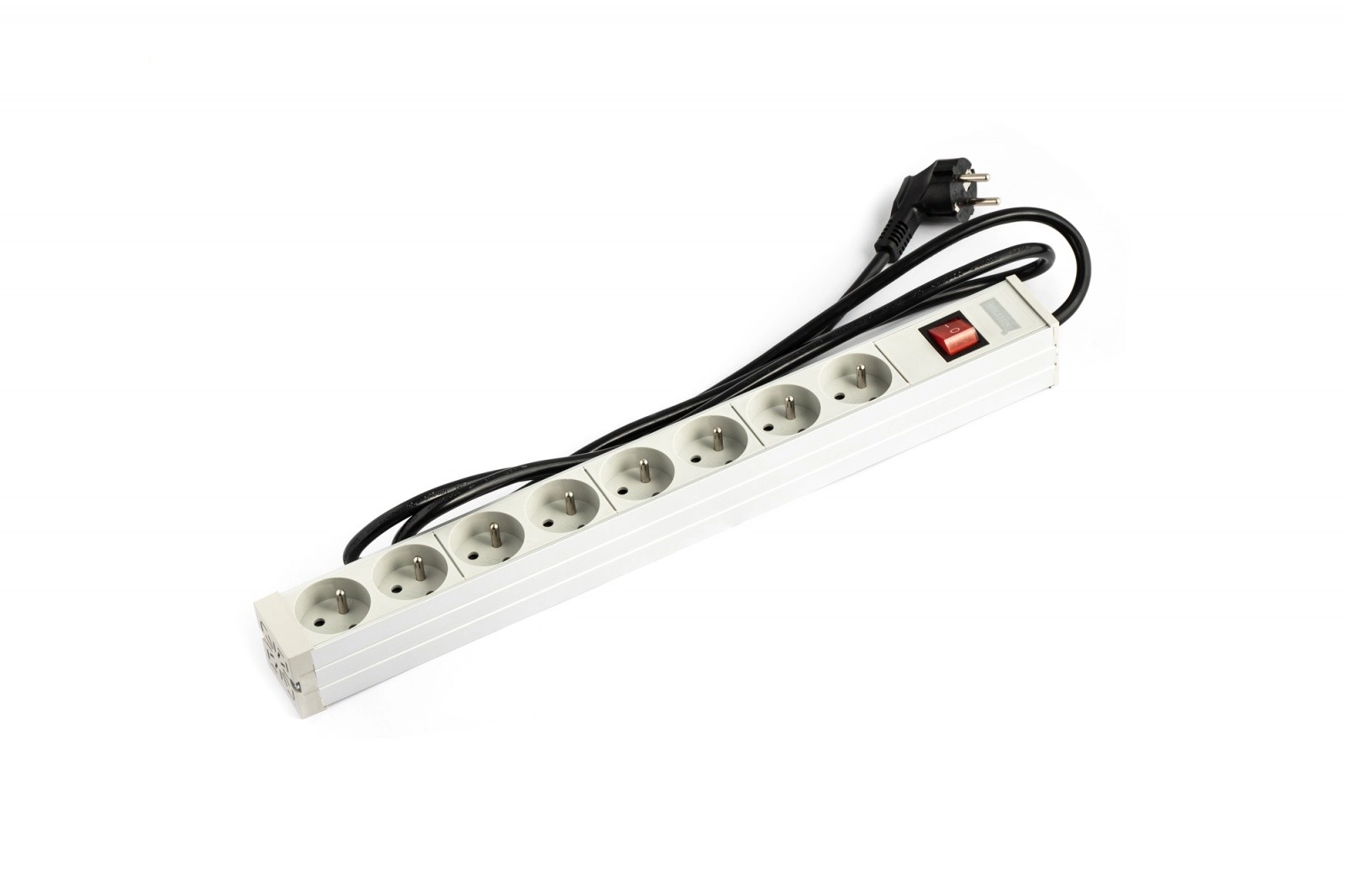 Multiprise PDU pour rack 19", 8× Type E, 1,8 m, Schuko, interrupteur, aluminium