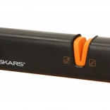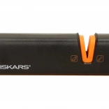 Maintenez vos couteaux de cuisine en parfait état avec l’aiguiseur universel FISKARS. Conçu pour une utilisation simple et sûre, sans alimentation électrique. Les pierres céramiques apportent douceur et longévité au tranchant, tandis que le mécanisme intégré garantit le bon angle d’affûtage à chaque passage.
