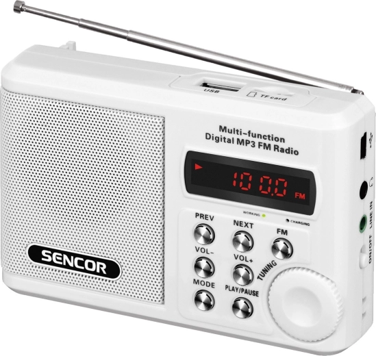 Radio FM de poche compacte avec écran LED clair et affichage numérique de la fréquence, offrant une utilisation facile et une excellente écoute en déplacement. Grâce à l'entrée USB et au logement microSD (jusqu'à 8 Go), écoutez vos morceaux MP3 préférés à tout moment et en tout lieu.