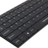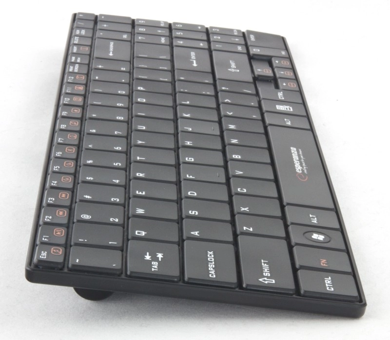Le clavier est équipé de touches multimédia et fonctionnelles pour lancer rapidement le navigateur, l’e‑mail, la calculatrice, les favoris et pour contrôler les médias (piste précédente/suivante, lecture/pause, sourdine, réglage du volume). Le jeu de caractères est appliqué par impression UV et protégé par une couche spéciale anti‑abrasion. L’ensemble est fabriqué à partir de matériaux résistants aux charges électrostatiques et est blindé contre les interférences électromagnétiques.