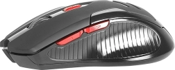 Le corps ergonomique avec une surface antidérapante en caoutchouc garantit une tenue confortable même en usage prolongé. La finition noire et rouge moderne aux lignes marquées souligne un look dynamique et s’intègre parfaitement à votre setup.