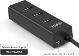 Ce HUB élégant et compact dans un boîtier en plastique deviendra un atout sur n'importe quel bureau, que ce soit à la maison ou au bureau. Le hub est alimenté directement par l'interface USB et prend en charge la technologie de charge BC1.2, qui règle intelligemment la tension et s'assure que l'alimentation est coupée une fois la batterie chargée, prolongeant ainsi la durée de vie des batteries chargées. De plus, le hub est équipé d'un port micro USB pour une alimentation supplémentaire, ce qui permet d'alimenter également des appareils plus gourmands en énergie.