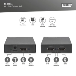 Avec une alimentation de 5V/1A, il est simple à alimenter et, grâce aux indicateurs d’état à LED, vous gardez toujours un œil sur les connexions. Le répartiteur est également doté d’une fonction de répétition HDCP côté moniteur, assurant une sécurité accrue de la transmission des données.
