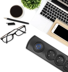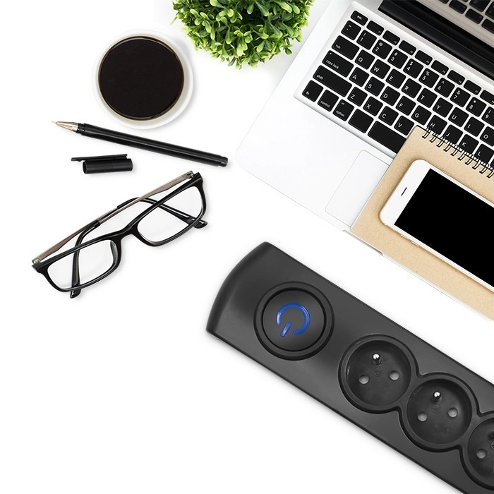 Un interrupteur circulaire rétroéclairé permet d’allumer ou d’éteindre d’un seul geste tous les appareils connectés. Vous voyez clairement quand la multiprise est sous tension.