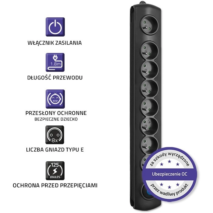 Un varistor intégré protège contre les pics de tension, des sécurités enfant dans chaque prise empêchent tout contact accidentel et le matériau PP ignifuge renforce la résistance.