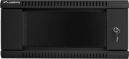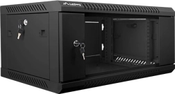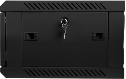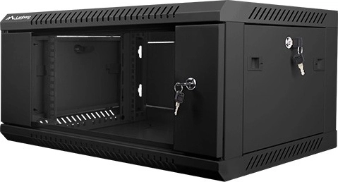 Armoire murale 19" compacte, hauteur 4U et profondeur 450 mm, pour l’installation sécurisée d’équipements réseau et IT. Elle propose une porte en verre verrouillable, une ventilation efficace et une structure en acier robuste dans une élégante finition noire.