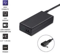 Adaptateur secteur fiable pour ordinateurs portables ASUS avec une puissance de 33 W, une tension de 19 V et un courant de 1,75 A, doté d’un connecteur précis 4,0 × 1,35 mm. Idéal comme chargeur principal ou de remplacement pour la maison, le bureau et les déplacements. Fabrication de qualité et protections de sécurité intégrées pour une alimentation stable et efficace de votre ordinateur portable.