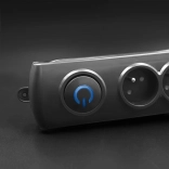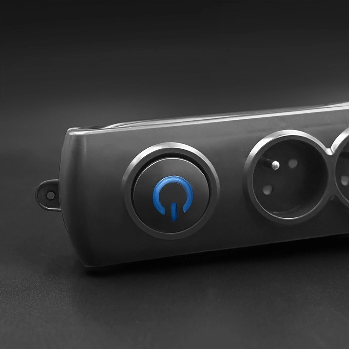 L’interrupteur rétroéclairé permet de déconnecter instantanément tous les appareils sans se pencher – idéal au sol près du bureau ou du meuble TV.