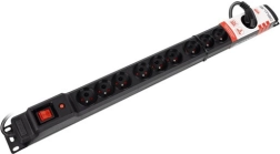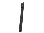 Multiprise parafoudre professionnelle pour racks 19'' avec 12 prises avec terre, disjoncteur automatique et protection contre les surtensions. Idéale pour un montage vertical dans les baies, les salles de conférence ou sur les postes de production – distribution d’alimentation fiable avec contrôle rapide grâce à l’interrupteur central.