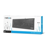 Natec Barracuda Slim est conçu pour un confort et une durabilité maximaux. Le clavier offre un profil élégant qui le classe dans la catégorie Slim. Les touches plates et très silencieuses offrent un confort de travail comparable à celui d’un clavier d’ordinateur portable. La partie inférieure du boîtier est prolongée pour soutenir les poignets, rendant le travail encore plus confortable.