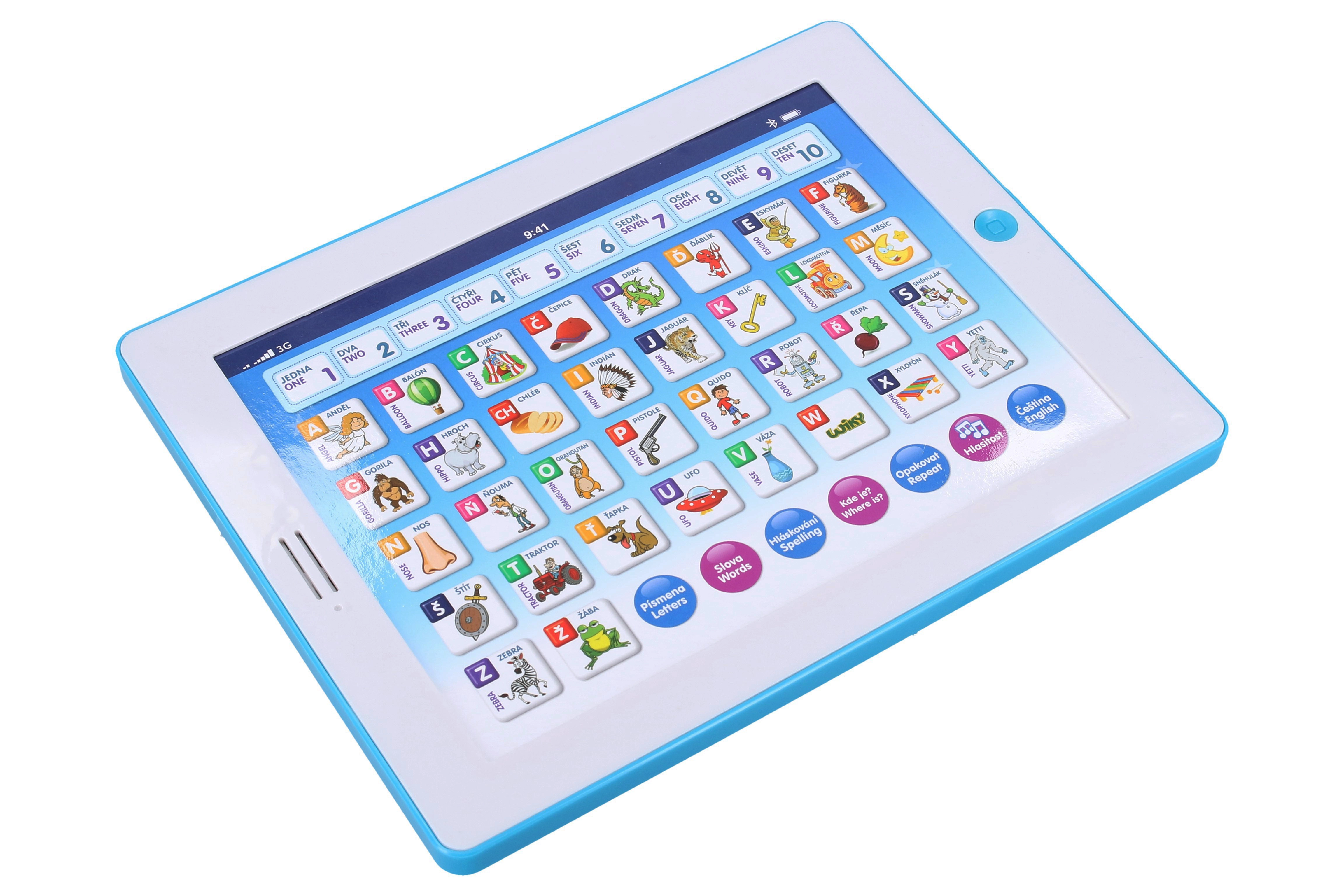 Tablette ludique et éducative pour jeunes explorateurs dès 3 ans. Elle enseigne en tchèque et en anglais, aide à maîtriser le comptage de 1 à 10, l’alphabet et l’orthographe. Contient des jeux amusants avec des lettres, des mots et des chiffres et joue des mélodies.