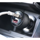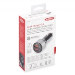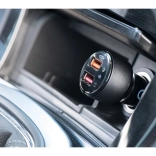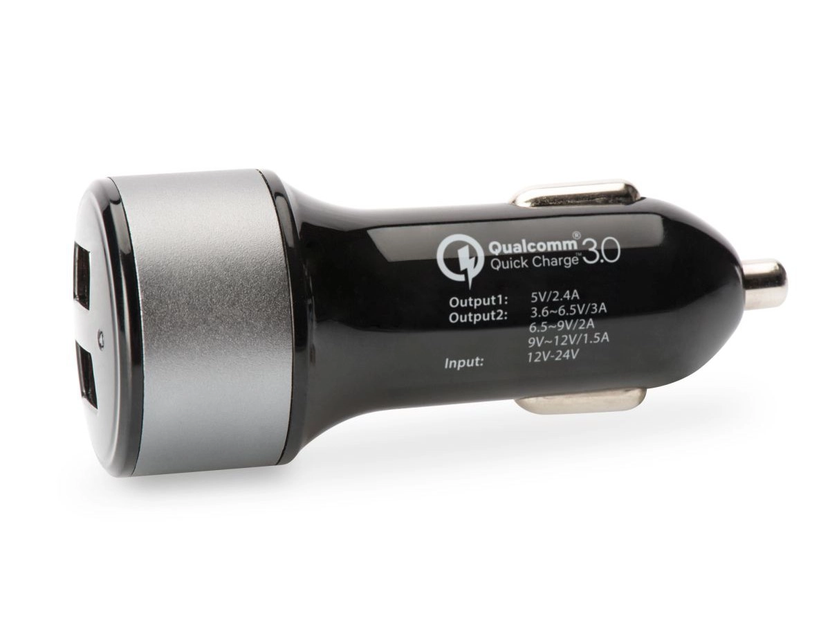 Chargeur voiture compact avec technologie Qualcomm Quick Charge 3.0 permettant la charge rapide de jusqu’à deux appareils simultanément. La paire de ports USB (QC 3.0 + charge intelligente 2,4 A) reconnaît automatiquement le téléphone ou la tablette connectés et fournit un courant optimal. Large entrée 12–24 V, protection contre les surtensions, les courts‑circuits, les surcharges et la surchauffe, et pratique indication LED font de ce chargeur noir‑argent un compagnon de voyage fiable.