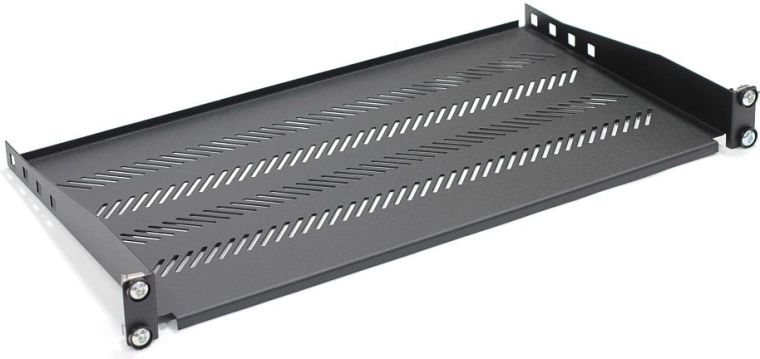 Étagère universelle pour rack 19" d’une profondeur de 250 mm et d’une hauteur de 1U, idéale pour stocker de la documentation ainsi que des appareils sans supports de montage. Sa construction en acier robuste et sa perforation pour un meilleur flux d’air garantissent stabilité et refroidissement fiable. Montage sur deux montants porteurs pour une installation aisée dans la plupart des baies réseau et serveurs.