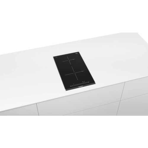 Cette table de cuisson à induction étroite (env. 30 cm) est idéale pour les petites cuisines, les îlots ou comme complément à une autre surface de cuisson. L’induction chauffe directement le fond du récipient, ce qui permet de cuisiner plus vite, plus économiquement et plus en sécurité – la surface autour reste relativement froide et se nettoie facilement.