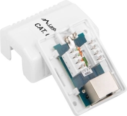 Prise RJ45 Cat.6 blindée pour des réseaux de télécommunication haut débit. Idéale pour le câblage structuré aux points d’utilisateur.
