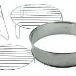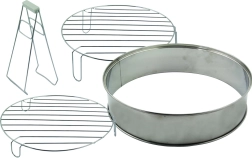 L'emballage comprend des grilles à différentes hauteurs, un plateau d'égouttage et une pince de levage pratique. L'anneau d'extension ajoute 6 litres de capacité supplémentaires, vous permettant de cuire de plus grosses pièces de viande ou un poulet entier.