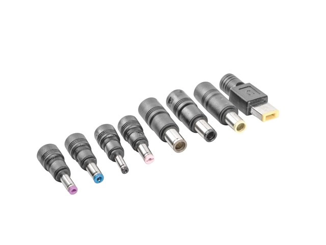 Le coffret comprend 8 embouts de différentes dimensions pour HP, DELL, ASUS, ACER, TOSHIBA, IBM et LENOVO. Un seul adaptateur peut ainsi alimenter plusieurs appareils à la maison et au bureau.
