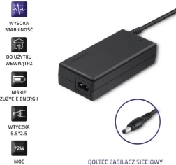 Cette alimentation Qoltec est un excellent choix pour alimenter en toute sécurité une large gamme d'appareils électroniques tels que moniteurs, routeurs, téléviseurs, jouets, chargeurs de batteries pour outils électriques, imprimantes, scanners et terminaux de caisse. Elle se distingue par son format compact et son installation facile directement sur la prise.