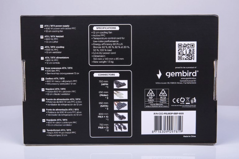 Alimentation ATX fiable de 600 W avec certification 80 Plus Bronze, offrant une alimentation stable et efficace pour les configurations PC modernes. Grâce au PFC actif, au ventilateur silencieux de 120 mm à régulation de vitesse et aux câbles gainés, elle assure un intérieur de boîtier propre et un refroidissement efficace.