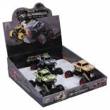 Amusante voiture tout-terrain à remontoir pour une conduite dynamique sur tous les terrains. Elle offre une construction robuste, une suspension fonctionnelle et des dimensions compactes de 15 × 9 × 9,3 cm. Disponible en 3 variantes de couleur – vert, jaune, gris.