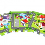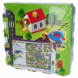 Les pièces sont entièrement lavables et ne contiennent pas de substances nocives. Elles peuvent être utilisées comme tapis de jeu ou comme blocs indépendants pour la construction et le jeu créatif. Le thème de la ville stimule l’imagination et favorise le développement de la motricité fine et globale.