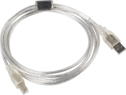 Câble USB 2.0 transparent de haute qualité Lanberg, idéal pour connecter un ordinateur à une imprimante, un scanner et d’autres périphériques. Grâce à l’utilisation d’un noyau en ferrite, le signal transmis est conservé dans sa qualité d’origine.