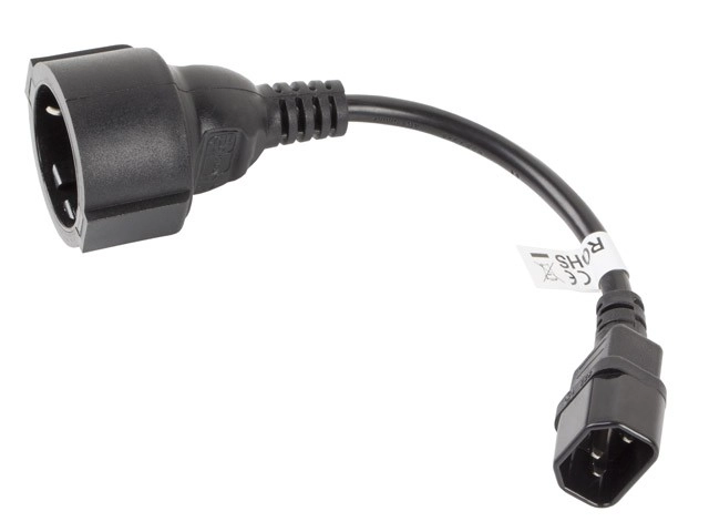 Court câble rallonge LANBERG avec connecteurs IEC 320 C14 → Schuko (prise) d’une longueur de 20 cm, connecte de manière fiable alimentations, onduleurs (UPS) ou serveurs à une prise standard. Il offre une grande fiabilité, une alimentation sûre et une construction résistante pour un usage domestique comme professionnel.