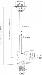 Support de plafond pour LCD/LED 23-42 pouces 50 kg vous permet de monter en toute sécurité votre écran ou téléviseur au plafond. Profitez d’une flexibilité maximale grâce au réglage de la longueur et de l’angle d’inclinaison.