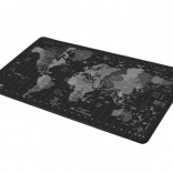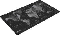 Le tapis est orné d’une carte du monde avec les noms des pays et les fuseaux horaires, ce qui en fait non seulement un accessoire stylé, mais aussi un outil utile pour le travail ou les études.