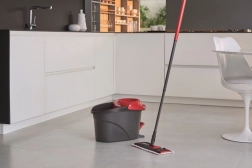 Le seau avec pédale et panier redessiné permet une évacuation efficace de l’eau et un contrôle précis de l’humidité de la serpillière – rapide, pratique et sans contact avec l’eau sale.