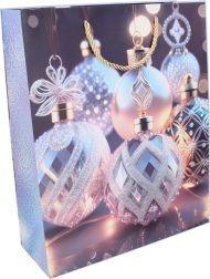 Sac cadeau de Noël élégant, taille M, dimensions 26 × 32 × 10 cm, idéal pour emballer vos cadeaux avec style. Il offre une construction robuste, des dimensions pratiques et un design festif en 4 variantes pour chaque occasion.