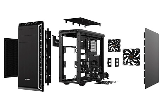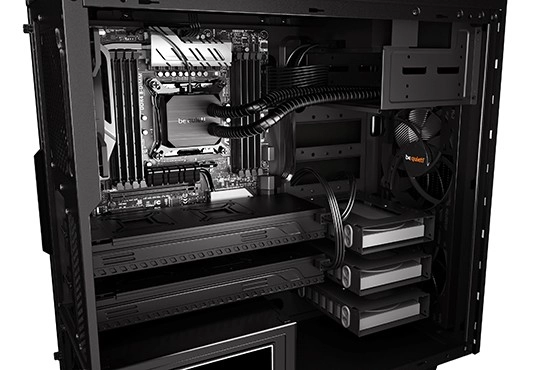 Deux ventilateurs préinstallés PURE WINGS 2 minimisent les turbulences, tandis que les matériaux d’amortissement réduisent considérablement le bruit de l’ensemble du système.