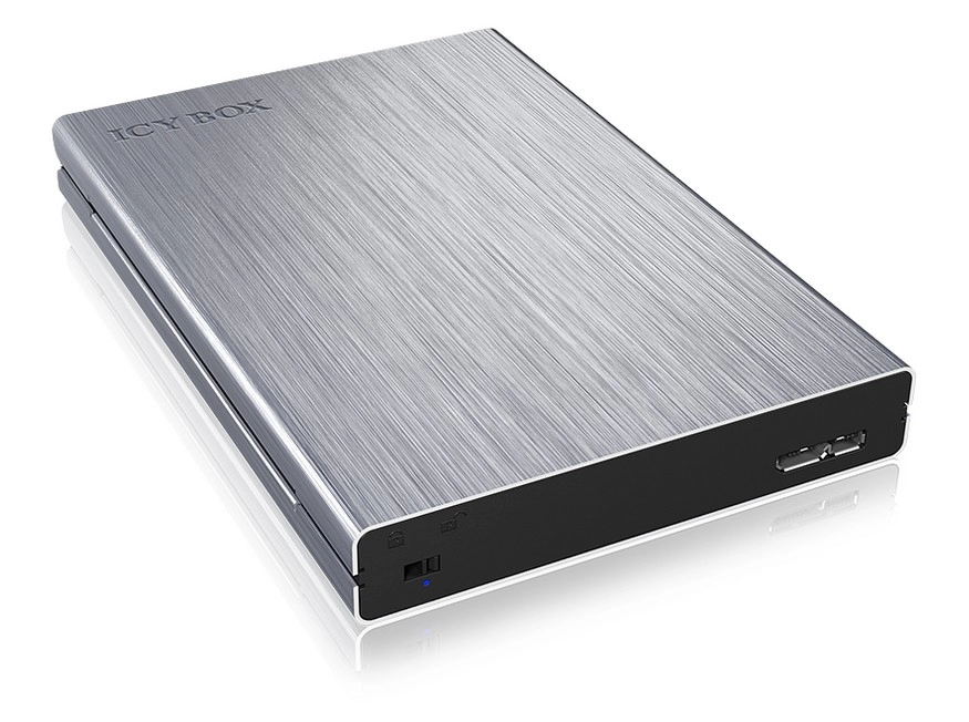 Boîtier ICY BOX léger et robuste en aluminium pour disques SATA 2,5" offrant un USB 3.0 rapide (5 Gbit/s) avec prise en charge UASP, un commutateur de protection en écriture pratique pour des données sécurisées, un fonctionnement silencieux sans ventilateur et une compatibilité avec PC et Mac.