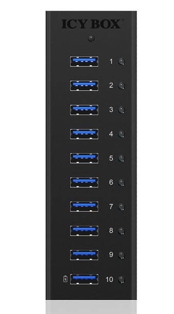 Étendez votre ordinateur avec 10 ports USB 3.0 offrant des vitesses jusqu’à 5 Gb/s. Ce hub actif Icy Box avec un boîtier en aluminium robuste propose une alimentation externe stable DC 12 V, un port de charge dédié 5 V / 2,1 A (BC 1.2), le Plug & Play et le Hot Swap pour une utilisation sans effort à la maison comme au bureau.
