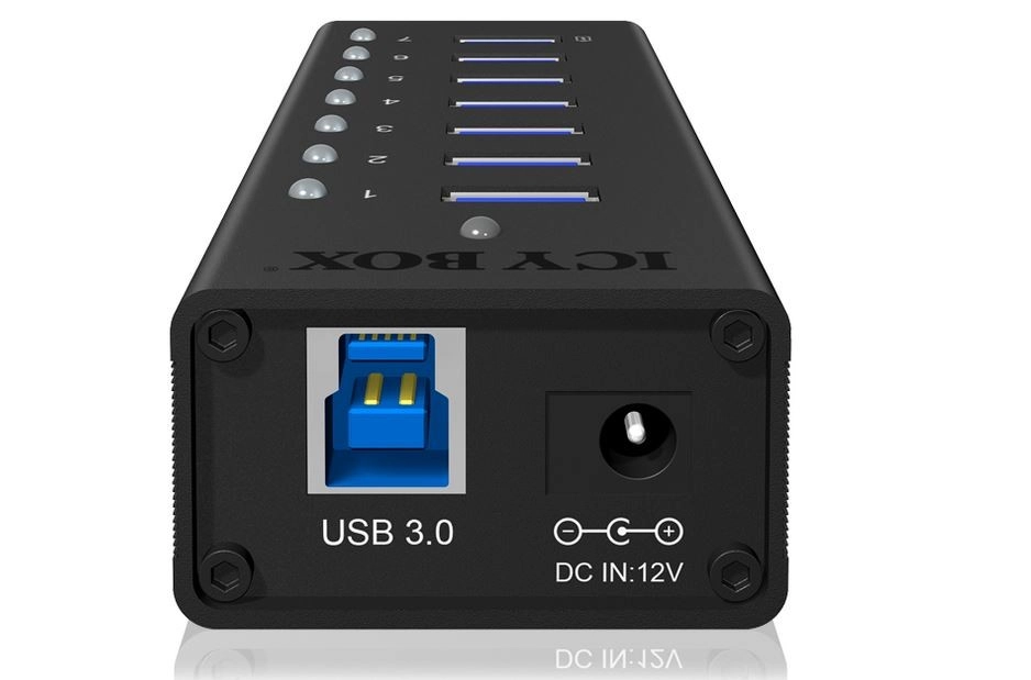 Le hub USB actif ICY BOX transforme un port de votre ordinateur en sept USB 3.0, vous permettant de connecter facilement des disques externes, claviers, souris, lecteurs de cartes ou imprimantes. Grâce à la norme USB 3.0 (5 Gbit/s), vous bénéficiez de vitesses nettement supérieures à l’USB 2.0, tout en conservant une rétrocompatibilité totale avec les appareils plus anciens.