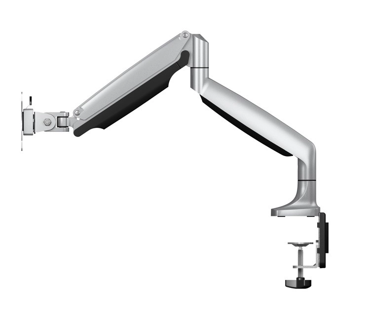 Élégant support de bureau pour un moniteur jusqu’à 32", alliant un design aluminium fin à une rotation complète à 360°, une gestion des câbles facile et un réglage rapide de la hauteur sans outils. Compatible avec les VESA 75x75 et 100x100.