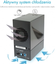 Remplacement facile des disques sans démontage complexe et ventilateur de 60 mm pour des températures stables et une durée de vie HDD prolongée.