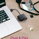 Branchez simplement le lecteur IB‑CR301‑U3 sur un port USB 3.0 disponible pour accéder immédiatement aux données des cartes mémoire. Le haut débit jusqu’à 5 Gbit/s garantit des transferts nettement plus rapides que les anciens standards et une manipulation fluide des fichiers volumineux.