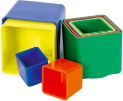 Les cubes sont en plastique résistant, faciles à entretenir et la plus grande pièce mesure 9 × 9 × 9 cm. Le jouet convient dès 1 an et est fabriqué en République tchèque. Les coloris sont fournis en assortiment selon la disponibilité du moment.