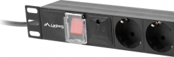 Multiprise PDU LANBERG professionnelle pour baie 19" offrant 7 prises SCHUKO, montage horizontal 1U, puissance max. 4000 W et une alimentation sécurisée avec parafoudre, disjoncteur automatique et câble 2 m. Idéale pour serveurs et équipements réseau avec protection fiable et châssis en aluminium robuste.