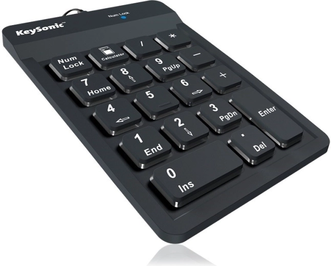 Ce pavé numérique est fabriqué en silicone, ce qui lui offre une protection totale contre la poussière et une résistance à l’eau conforme à la norme IP64. Il dispose d’un bouton multifonction intégré servant à lancer la calculatrice sous Windows.