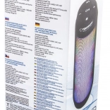L’effet LED propose quatre modes dynamiques – du pulsage au rythme aux transitions de couleurs fluides – et peut être entièrement désactivé pour économiser l’énergie. Les commandes simples sur le panneau supérieur vous donnent un contrôle total sur la musique et l’éclairage.
