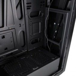 Prise en charge de ventilateurs 120 mm en haut et à l’arrière, avec en option une paire de 120 mm pour le refroidissement GPU. Filtre supérieur magnétique et filtre d’alimentation amovible pour simplifier le nettoyage.