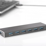 Le hub USB 3.0 DIGITUS est doté d'un boîtier en aluminium de haute qualité, qui a un design élégant et intemporel, convenant à tout bureau.