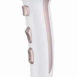 Le sèche-cheveux Blaupunkt sèche vos cheveux rapidement et en douceur grâce à un puissant moteur de 2000 W et à une régulation de la température. Son design élégant blanc et or rose ajoute du style à votre routine capillaire quotidienne.